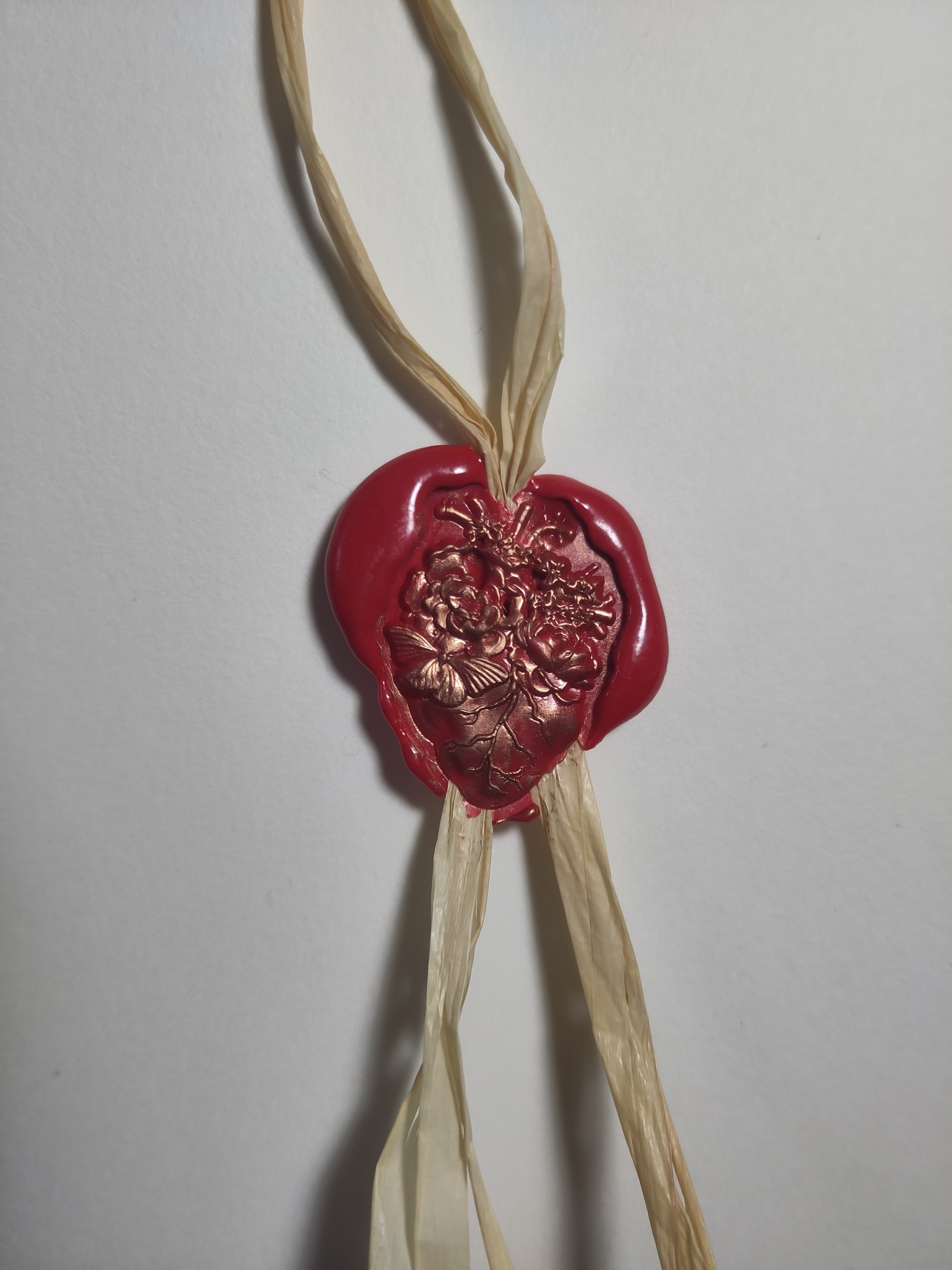 Sceau à la cire rouge, cœur et fleurs