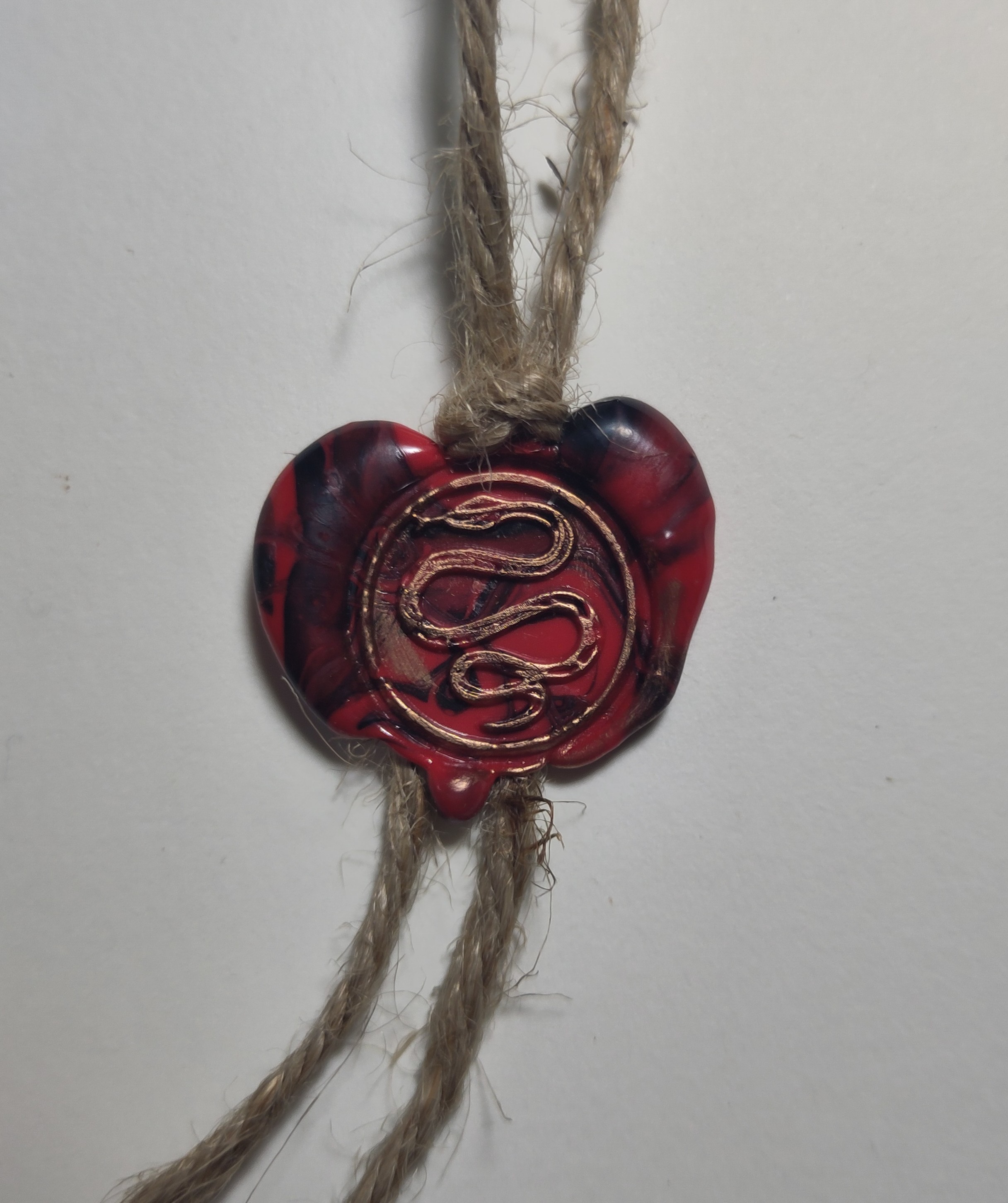 Sceau à la cire rouge et noire, serpent