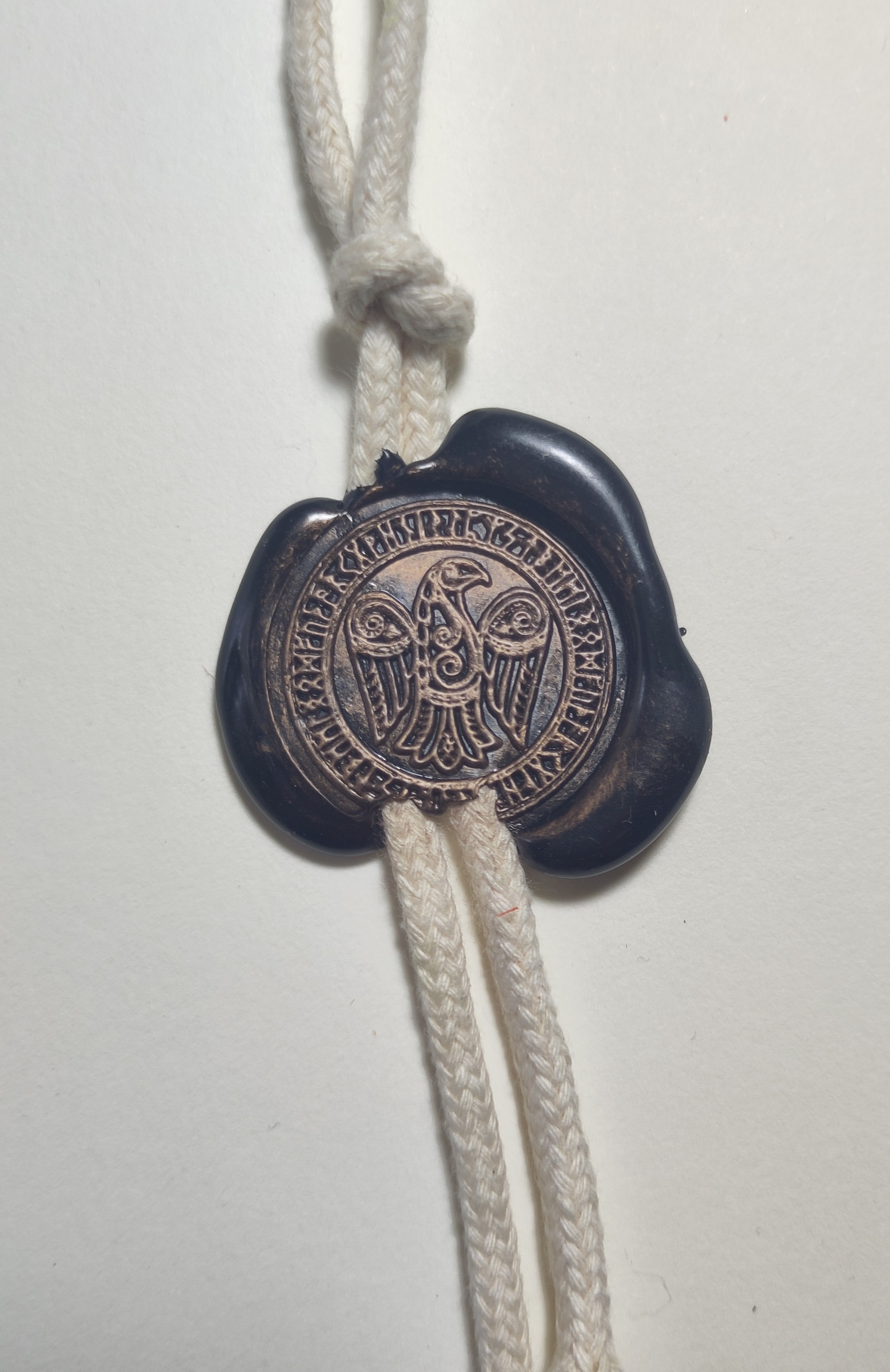Sceau à la cire noire, corbeau et  runes celtiques