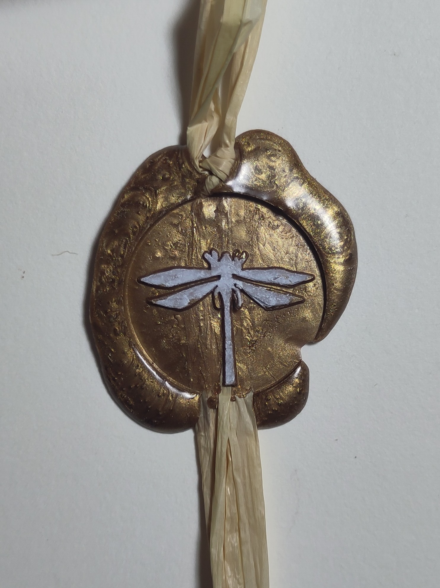 Sceau à la cire dorée, libellule